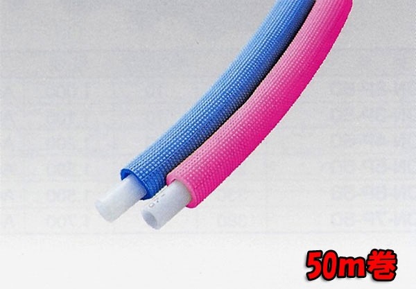 エクセルパイプ 保温付 架橋 ポリエチレン管 パイプ 三菱ケミカル 給水 給湯 宅内 配管 工事 10A 被覆厚 5mm 50m巻 ブルー/ピンク