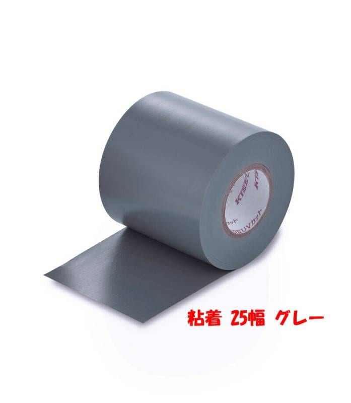UVカット 高耐候性 テープ 配管用テープ 三和商工 KISS STRONGER 屋外 露出 配管 保護 耐紫外線 対策 剥離紙なし ノリ付 粘着 25mm巾x10m巻 グレー