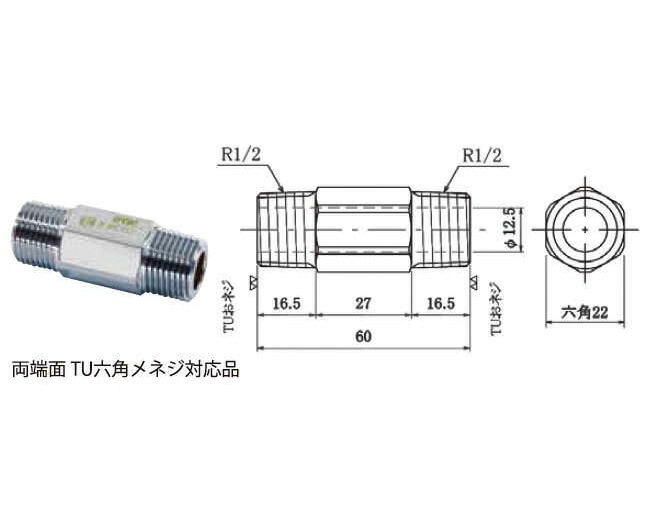 プロパン LPG 液化石油 ガス 燃焼器用 ホース接続アダプター LIA 認証 六角ロングニップル 接続継手 接続具 ビルトインコンロ ビルコン 交換 UTIC-06-60