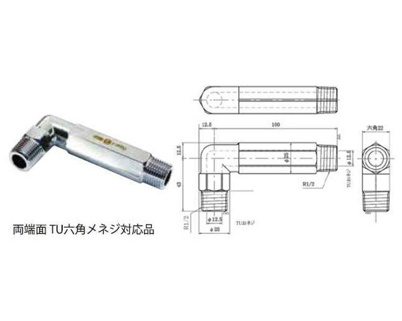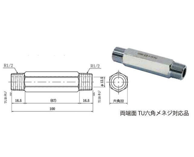 プロパン LPG 液化石油 ガス 燃焼器用 ホース接続アダプター LIA 認証 六角ロングニップル 接続継手 接続具 ビルトインコンロ ビルコン 交換 UTIC-06-100L