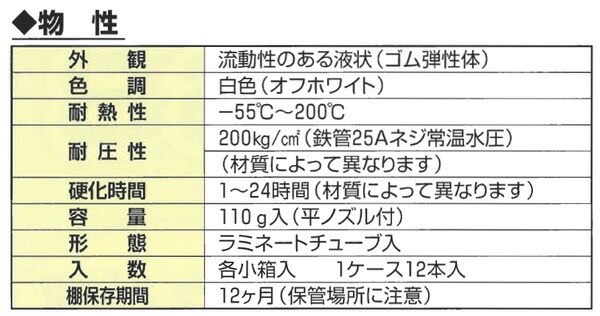 ・無用剤型で耐熱、耐圧性、耐薬品性に優れ、細物鉄管では通常圧に対して即シール性が発揮されます。