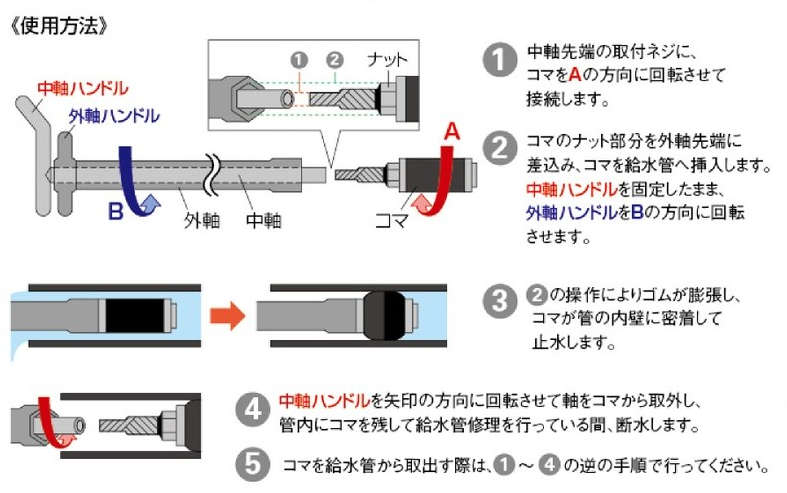 置コマ式 ポケット用 断水器 不断水 給水管 漏水 止めずに 止水 緊急 工事 P-13(13、16mm 用)
