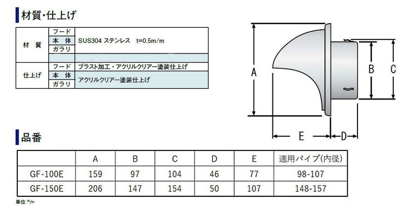 GF-100E 100φ 強制給排気型(網無 水止め無)