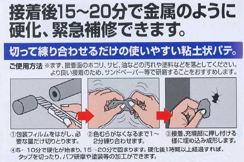 ・約15分で鋼鉄のように固まるエポキシパテです。