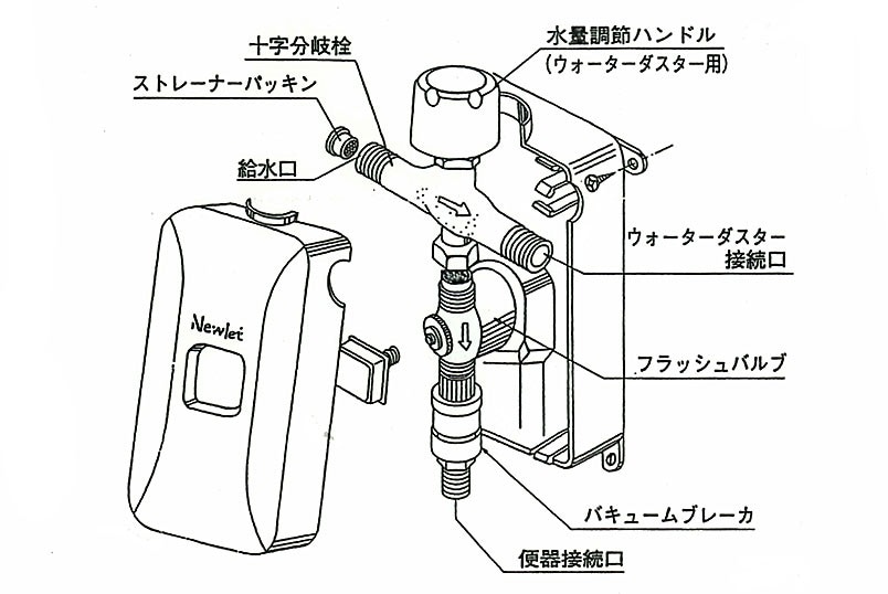 ・小さなゴミでもコントロールBOX内に流入すると、フラッシュバルブが正常に作動しなくなり、水が止まらなくなります。施工後の通水は十分に行い、ストレーナーを確実に取り付けてください。