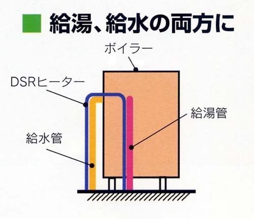 ・一本の凍結防止帯で給湯管と給水管の両方に取付けが可能です。