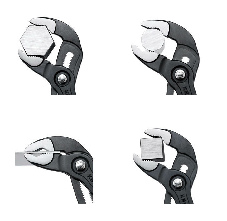 ・コブラと名付けられた、3枚合せのウォーターポンププライヤーは、クニペックス社が特許を持ち、高い操作性と耐久性を誇る高性能プライヤーの定番となっています。