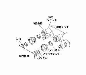 TOTOのW28山18のネジクランクにオーソドックスな3/4ネジ水栓を接続する際のアタッチメントです。