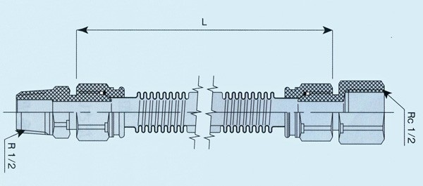 LPガス用の燃焼器用金属フレキシブル管です。