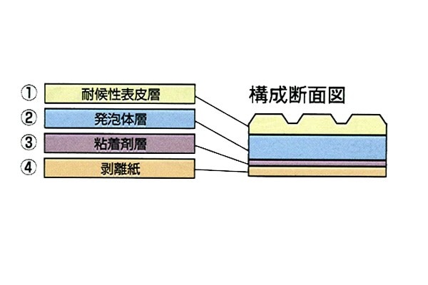 ・表皮層の耐候性素材にエンボス加工を施し、伸びやすく施工性に優れています。