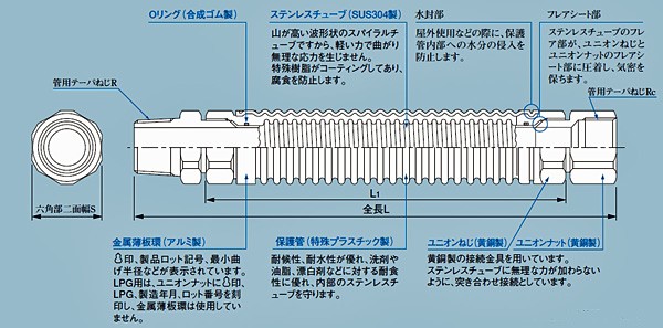 ・都市ガス用の燃焼器用金属フレキシブル管です。