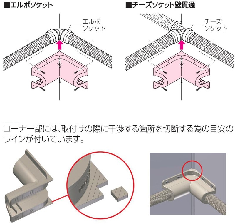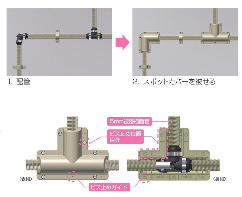 ・後付けが可能なので手持ちの継手で配管し、後日必要なカバーを準備して施工することができます。