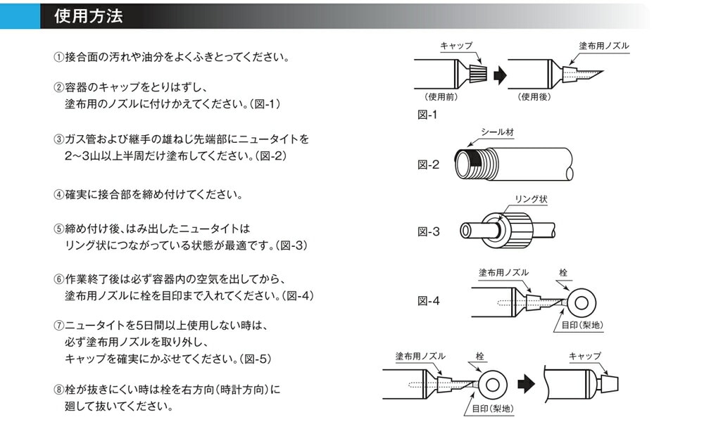 ・都市ガス、プロパンガスの配管ネジ部に使用するガス専用のシール剤です。