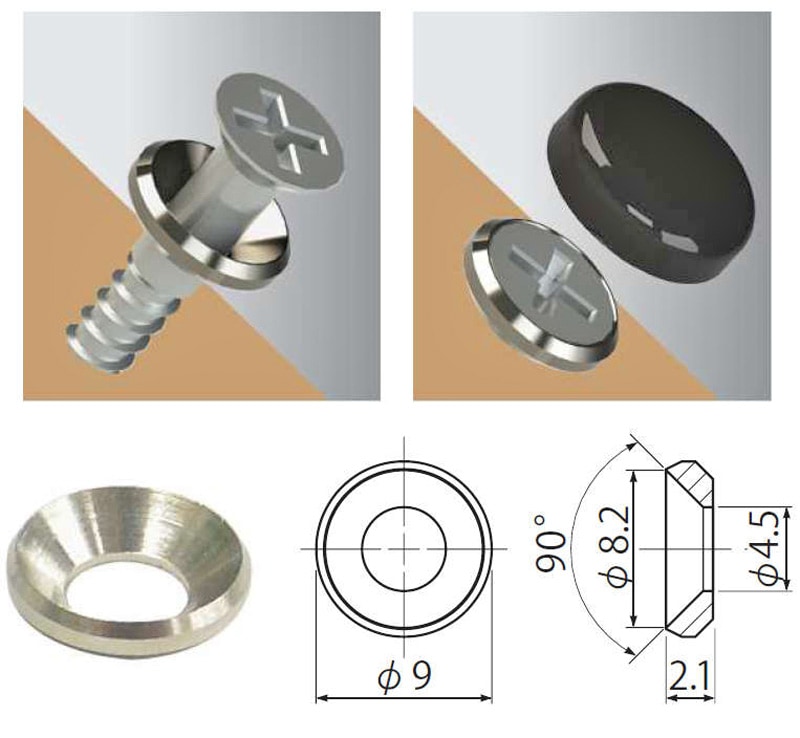 ・ビスデコキャップ用座金 又は 専用ビスをお使いください。