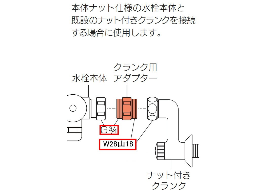 TOTOのサーモ水栓、シングル水栓の既存クランクにTBV034**型を取付するアダプターです。