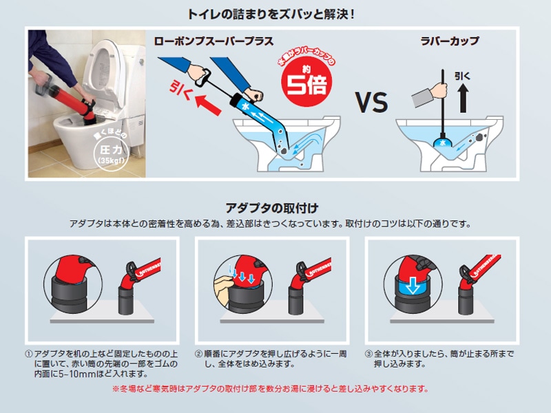 【13時迄は当日発送 日祝除く】 ローポンプスーパー アサダ トイレ 便器 キッチン 洗面 詰まり 解消 専用通水用具 業務用 R72070F アタッチメント3種類 ケース付