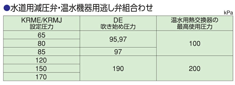 吹き始め圧力95kPaの逃し弁(DE20)と合わせてご使用ください。