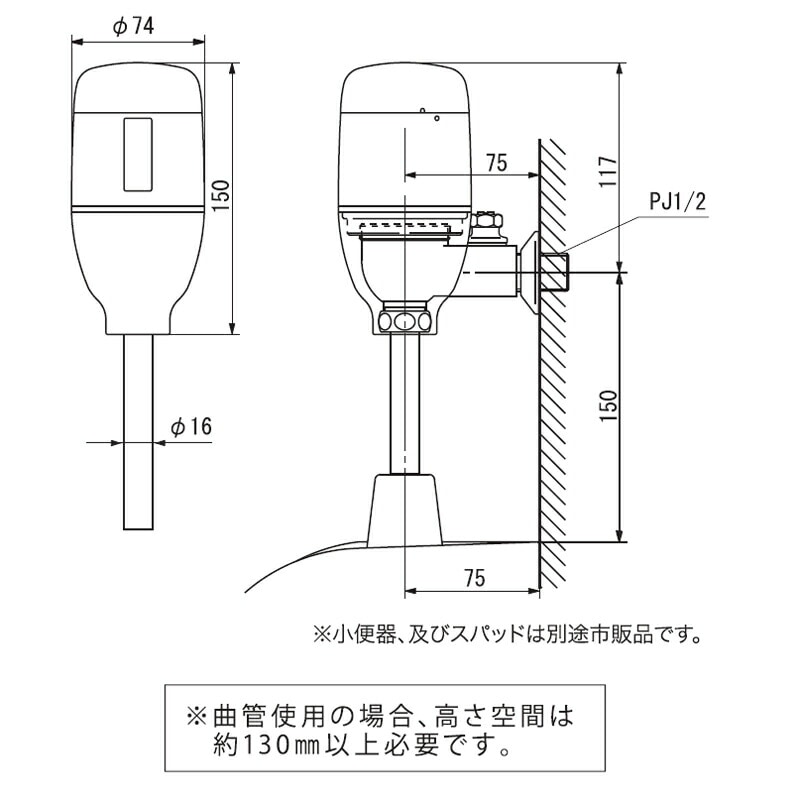 ・洗浄管直管150mm付属。