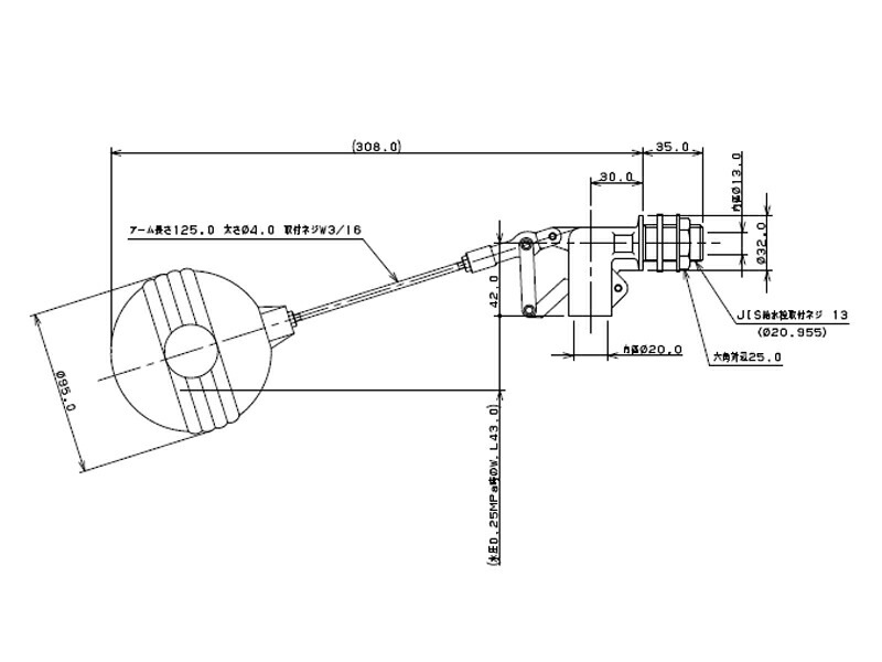 耐熱ポリ玉横型ボールタップ